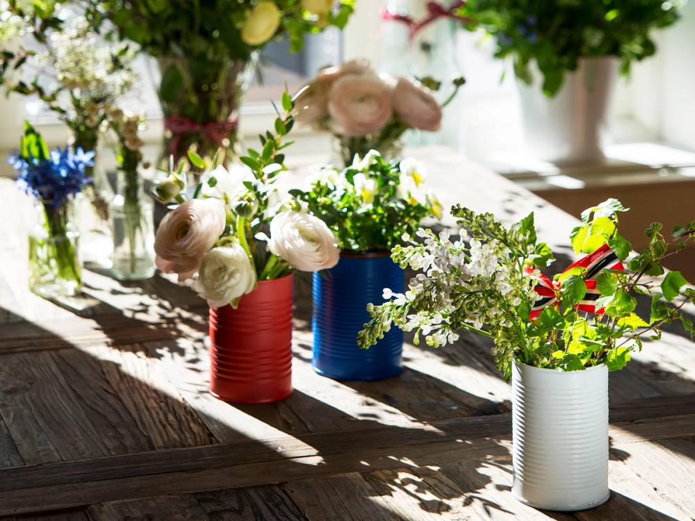 Har du noen gamle hermetikkbokser liggende? Disse egner seg godt både som lykter, små vaser eller som bordpynt.