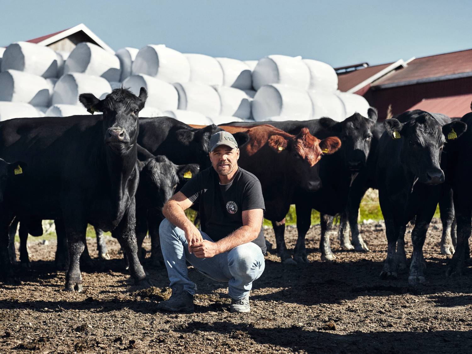 - Det går med mange rundballer til en angusflokk, så det blir mange timer på traktoren. Men da bruker vi tilsvarende lite kraftfôr med importert innhold. Det er bærekraftig produksjon, slik som jeg ser det, sier Espen.
