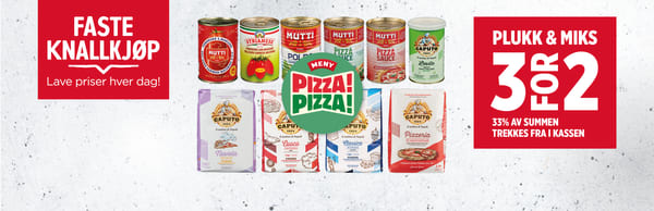Faste knallkjøp er ekstra gode kjøp med fast lav pris, og vi ønsker å gi våre kunder fast knallpris på produkter som handles ofte. Varer som bleier, barnemat, rundstykker, vaskemidler, gulost, iskaffe og yoghurt er noe av det du finner blant våre faste knallkjøp. Se også igjennom våre nyeste faste knallkjøp på blant annet Cevita juice, friske urter, Mutti tomater og Caputo mel og Ask spekepølser