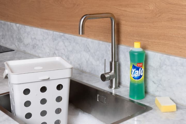 Første tips er å bruke hansker, så finner du fram en bøtte med lunkent vann og tilsetter litt Zalo.