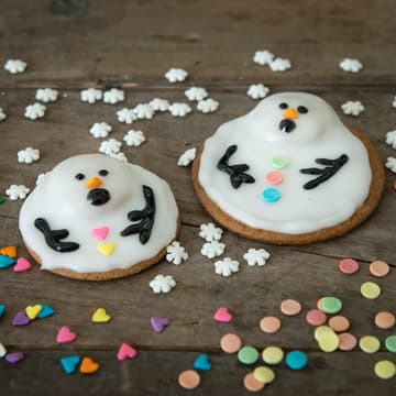 Ta to runde pepperkaker. Legg melisglasur på toppen av den ene, dekk med strøssel, smør på litt mer glasur og legg den andre pepperkaken oppå.