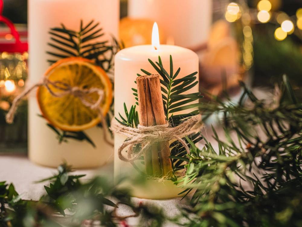 Gi lysene et varmere og mer sesongriktig preg ved å bruke det du allerede har hjemme. Fest kanelstenger, tørkede appelsinskiver eller små greiner av gran rundt kubbelys med litt hyssing eller silkebånd. En enkel og stemningsfull dekorasjon som passer perfekt til jul og vinterkvelder.