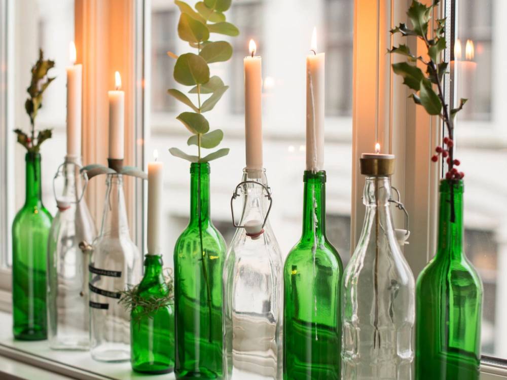 Du kan også bruke fargerike flasker og sette stearinlys eller annen pynt i dem, veldig enkelt og greit!