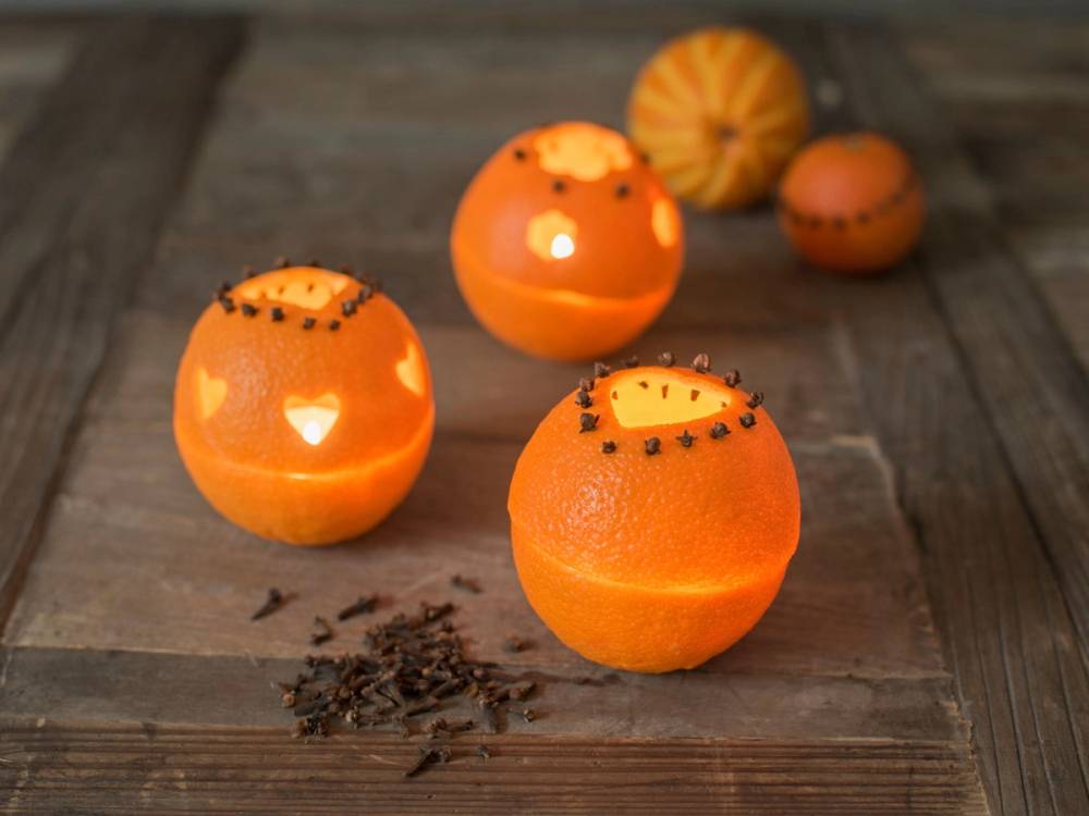 Du kan også bruke klementiner om du ønsker mindre lykter - bare husk at skallet er tynnere og det er lettere å rive opp når man skal skrelle klementinen.