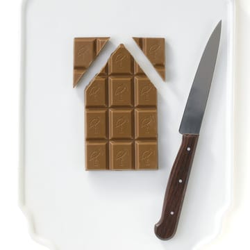 Sjokolade kan lett brekke og bli stykk om man bare skjærer i platen som den er. Begynn derfor med å varme den lett opp så den er litt mykere og ikke knekker - men den skal ikke miste formen!