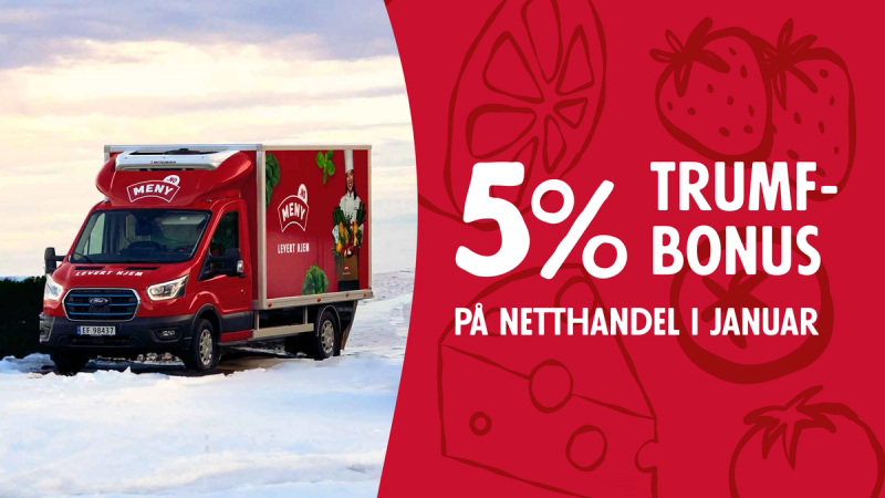 Få MER ut av handelen på nett som MENY MER-kunde i Stor-Oslo. Fra 19. januar - 31. januar får du 5 % Trumf-bonus på alle handler levert hjem*