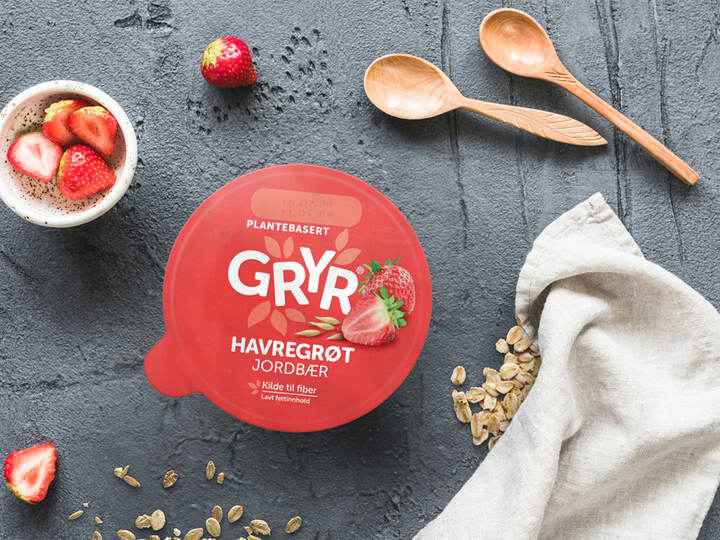 Gryr lanserer plantebasert havregrøt med forfriskende jordbærsyltetøy. Eneste plantebaserte on-the-go format med skje.