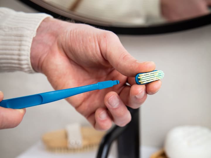 Blant de over 500 nyhetene som kommer i MENY i slutten av februar, er Jordans tannbørste med avtakbart børstehode. Du skifter kun busten når den er slitt, og sparer 82 prosent plast.