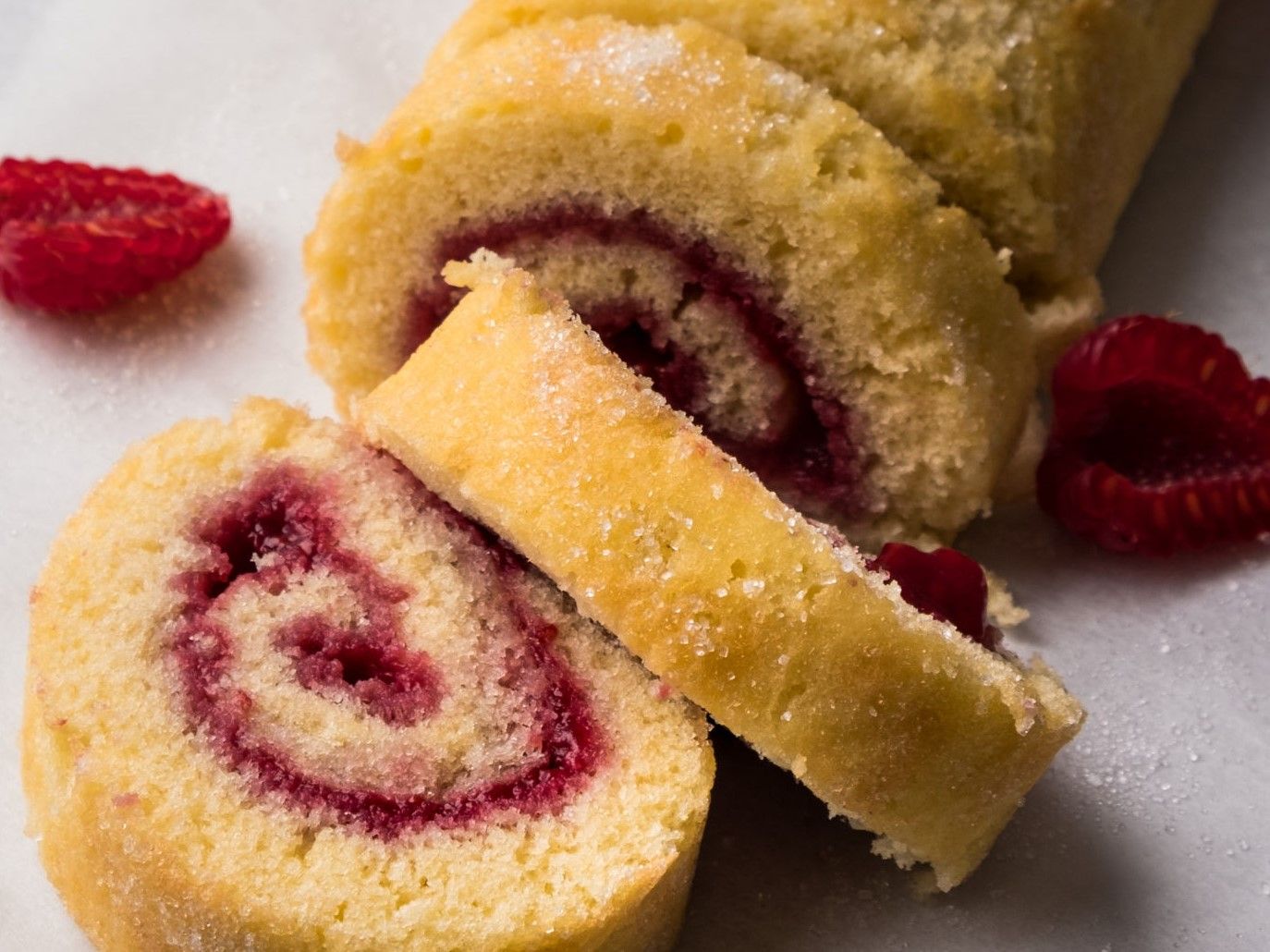 Enkel oppskrift på en klassisk, saftig rullekake med bringebærsyltetøy. Dette er en favoritt blant både voksne og barn, som i tillegg er rask å lage. Perfekt til bursdag eller andre selskap. Du kan gjerne fylle rullekaken med pisket krem blandet med syltetøy eller friske bær!