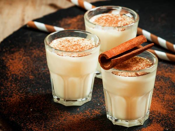 Oppskrift på eggnog, en amerikansk tradisjonsdrink som drikkes rundt juletider. Drikken har egg, fløte, vanilje og rom eller cognac som hovedingredienser, og før servering får den et dryss nyrevet muskattnøtt på toppen.