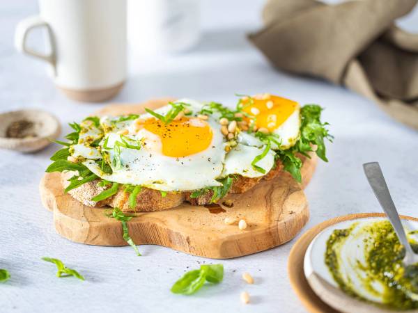 Egg i pesto er en Tik Tok trend og et godt tips når du ønsker deg en skikkelig god, men samtidig rask og enkel lunsj! Vi steker rett og slett et speilegg i grønn pesto og serverer på ferskt brød.