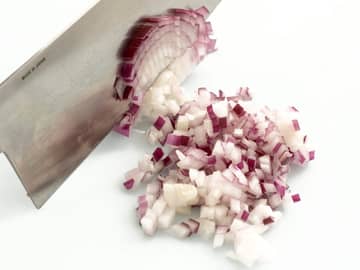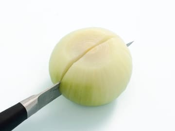 - Skyll kniven i kaldt vann et par ganger mens du kutter løken