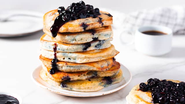 Oppskrift på tykke, luftige amerikanske pannekaker. En favoritt til frokost, med smeltet smør eller lønnesirup og friske bær. Denne oppskriften gir 12 små og tykke pannekaker. Du kan også lage blåbærpannekaker, ved å ha blåbær i røren. Se restetips i video.