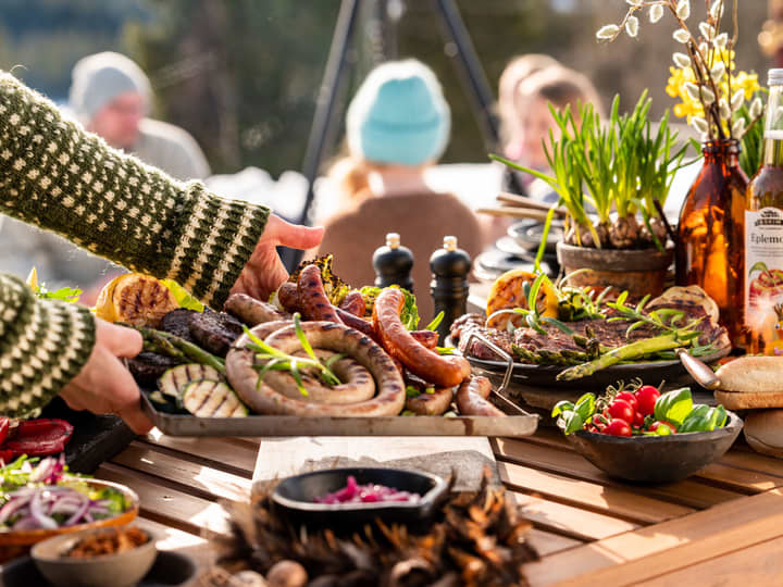 - Alt som gjør seg selv i ovnen på lav varme over lang tid, er perfekt hyttemat. Sett grønnsaker og poteter i en langpanne, og sett steken eller lammelåret på toppen. Dra på skitur mens middagen lager seg selv! Gryter som for eksempel Beouf Bourguignon kan gjerne stå å putre i 3 timer, og en lasagne kan godgjøre seg på lav varme i flere timer i ovnen.