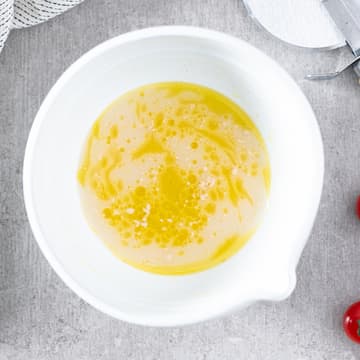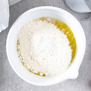 Hold igjen 0,25 dl av den totale væskemengden. Den skal tilsettes senere.