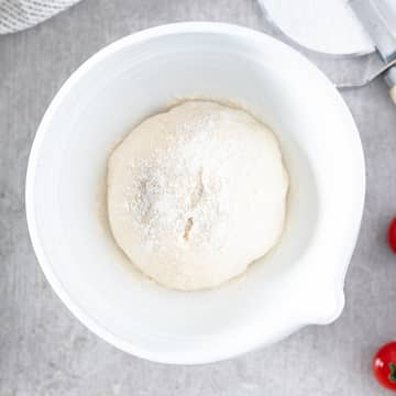 Del deigen i emner på ca. 250 g. for porsjonspizza. Form de til baller, og legg emnene i egne bokser med lokk smurt med litt olivenolje, eller i en form og dekk til med plastfolie.