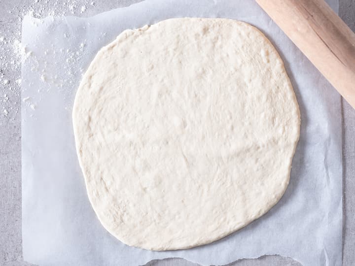 Du kan også prøve deg på å forme pizzaen med hendene ved å bruke fingrene og trykke deigen utover. Hvis du bruker hendene istedenfor kjevle, vil du ta vare på luftboblene i deigen og få en luftig og sprø pizzabunn.