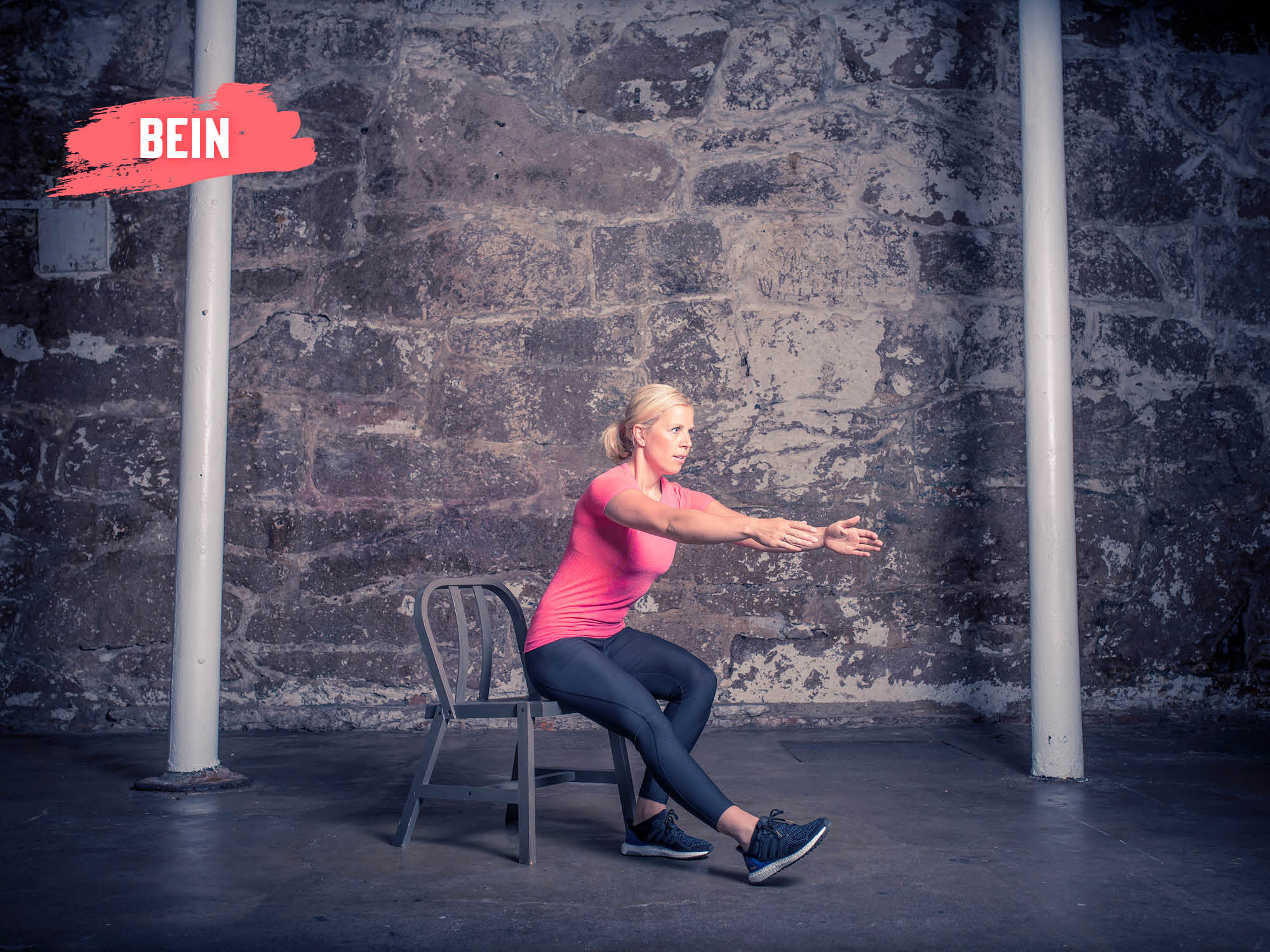 Still deg med ryggen til en stol eller benk. Stå på ett bein og senk kroppen uten å sette deg ned. Reis deg igjen uten å miste balansen. Gjenta i kontrollert tempo. Her vil du kjenne det ekstra godt på bakside lår og rumpe. Gjennomfør 3 runder med 10 repetisjoner.