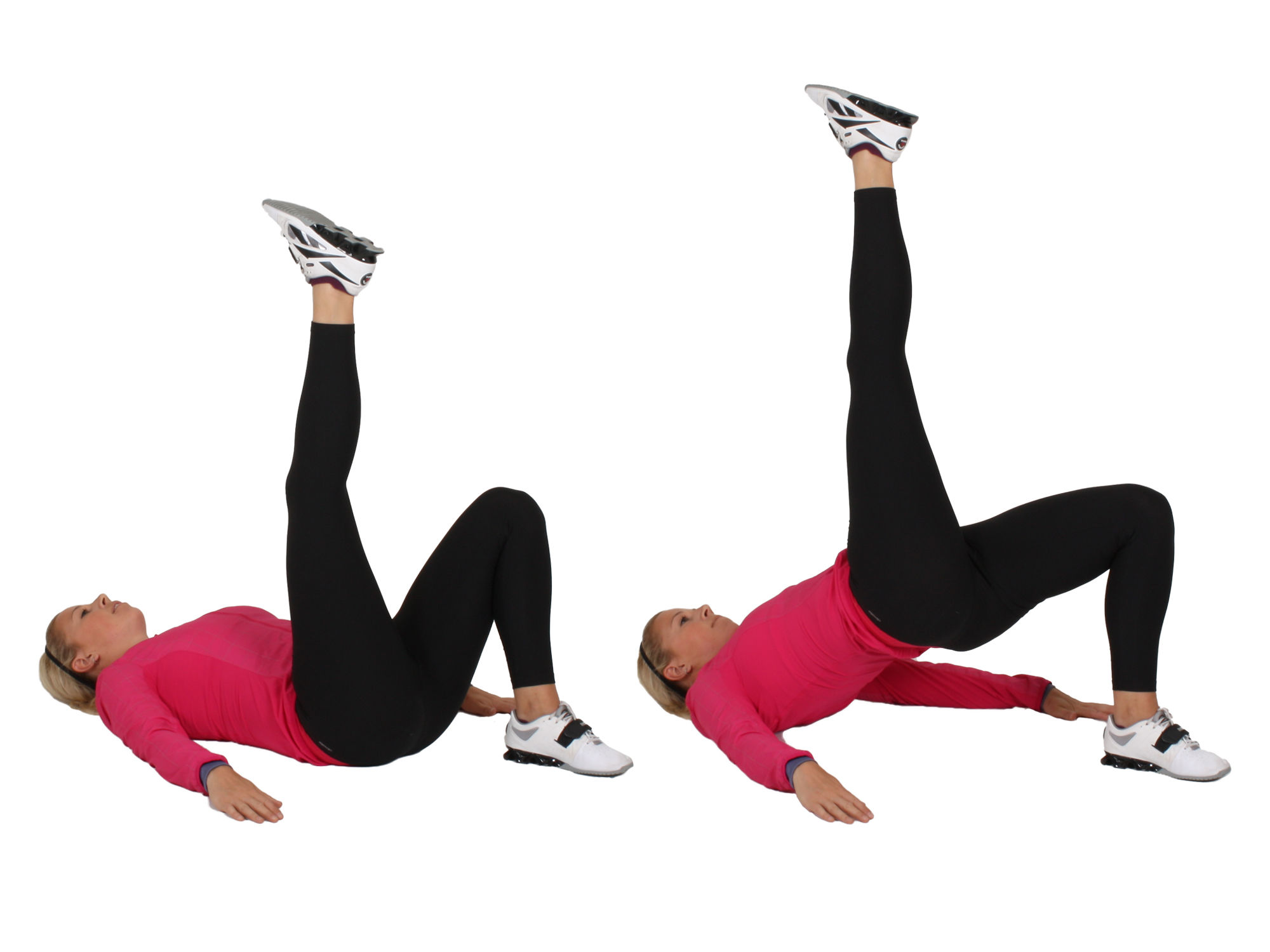 Hvordan: Ligg på ryggen med beina i 90 graders vinkel. Press hælen i bakken mens du løfter opp rumpa og presser rumpeballene sammen. Senk deg ned til bakken. Gjenta 5 ganger per bein.
