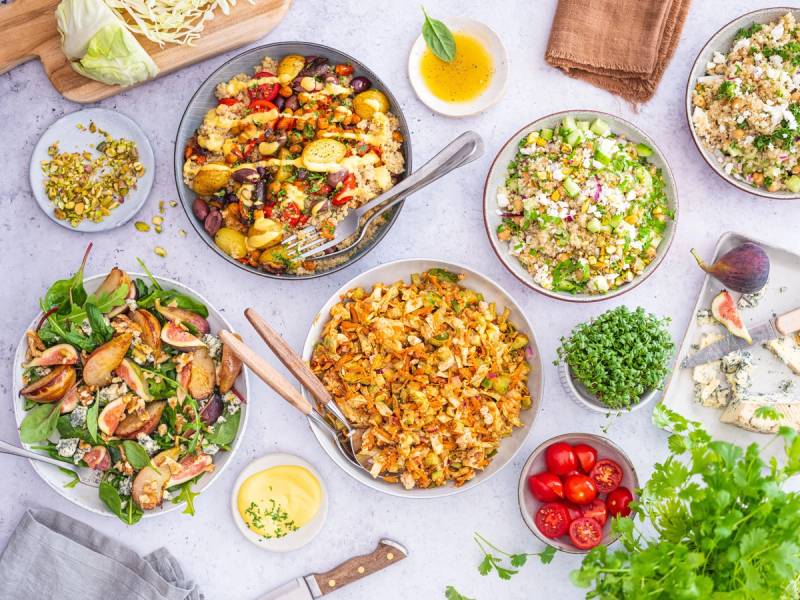Husk at vår salatbar gjør det enkelt å spise mer grønnsaker. Lag en fargerik salat som tilbehør, eller sett sammen et helt måltid med kylling, ost og pasta.