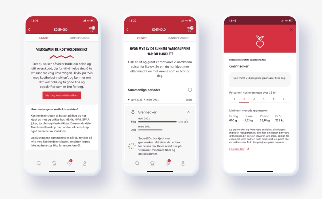 Vår nye tjeneste, «Kostholdsinnsikten», er basert på mat og drikke som du, og dem du deler Trumf-medlemskapet ditt med, har kjøpt hos MENY, Kiwi, Spar, Joker, Jacob's, CC Mat og Nærbutikken.